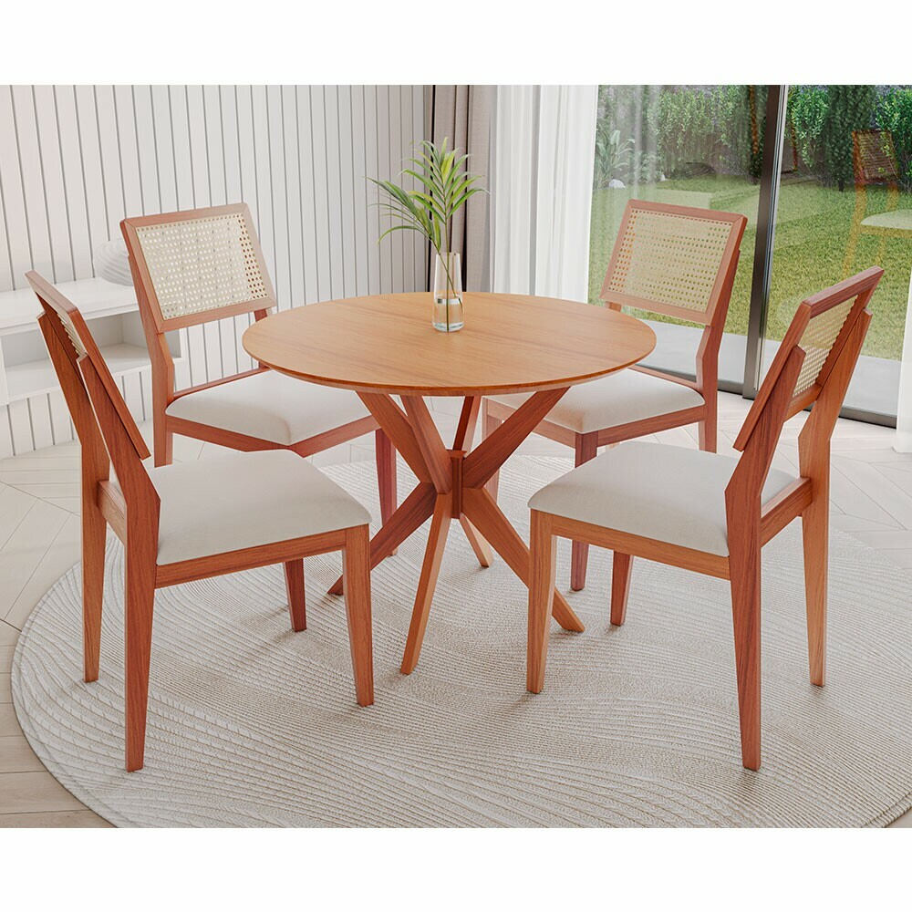 CJ MESA 4C AGN VITORIA REDONDA 90CM TAMPO LAMINADO CAD LARISSA MADEIRA