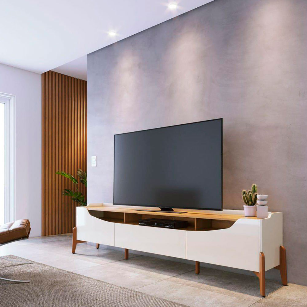 Com o Rack Bancada Para Sala Studio 1.8 Off White Nature - Imcal sua sala de estar ganha mais organização e um visual moderno e sofisticado.